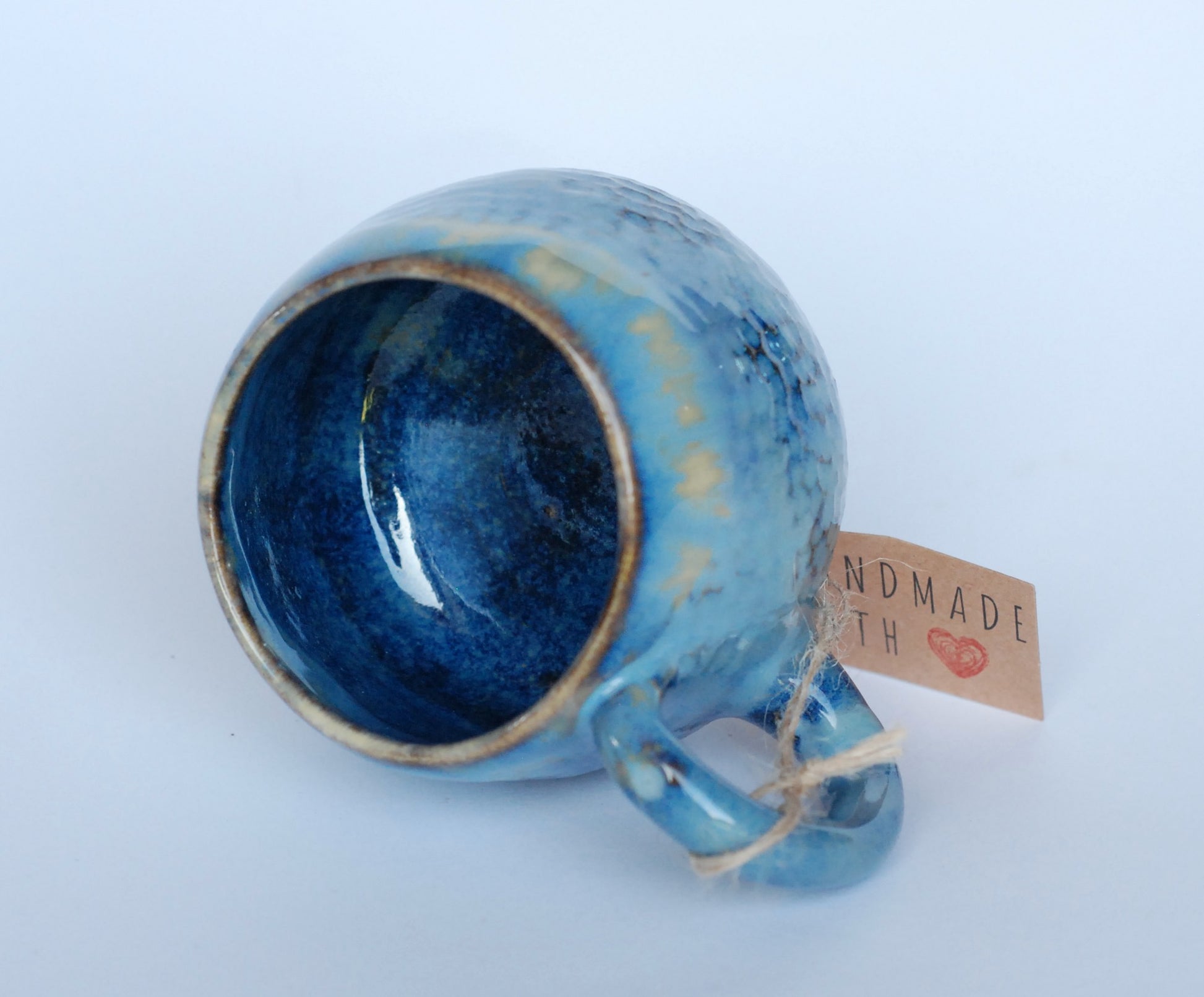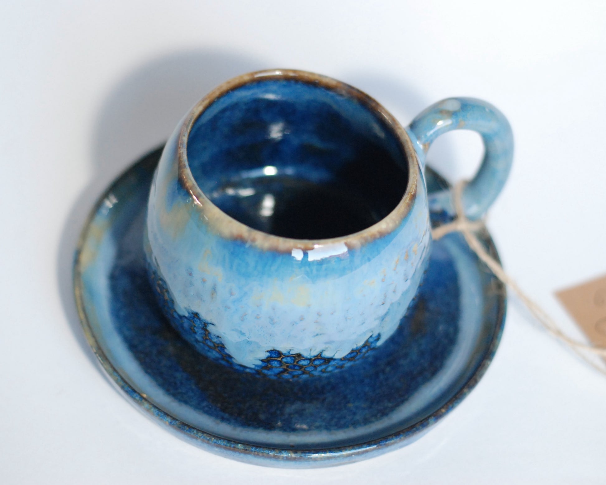 Filiżanka wytoczona na kole, idealna na kawkę czy celebrację herbaty. Zastosowana glina, szkliwo i procedury wypału w temperaturze 1250 zapewniają bezpieczne używanie. Można myć w zmywarce.