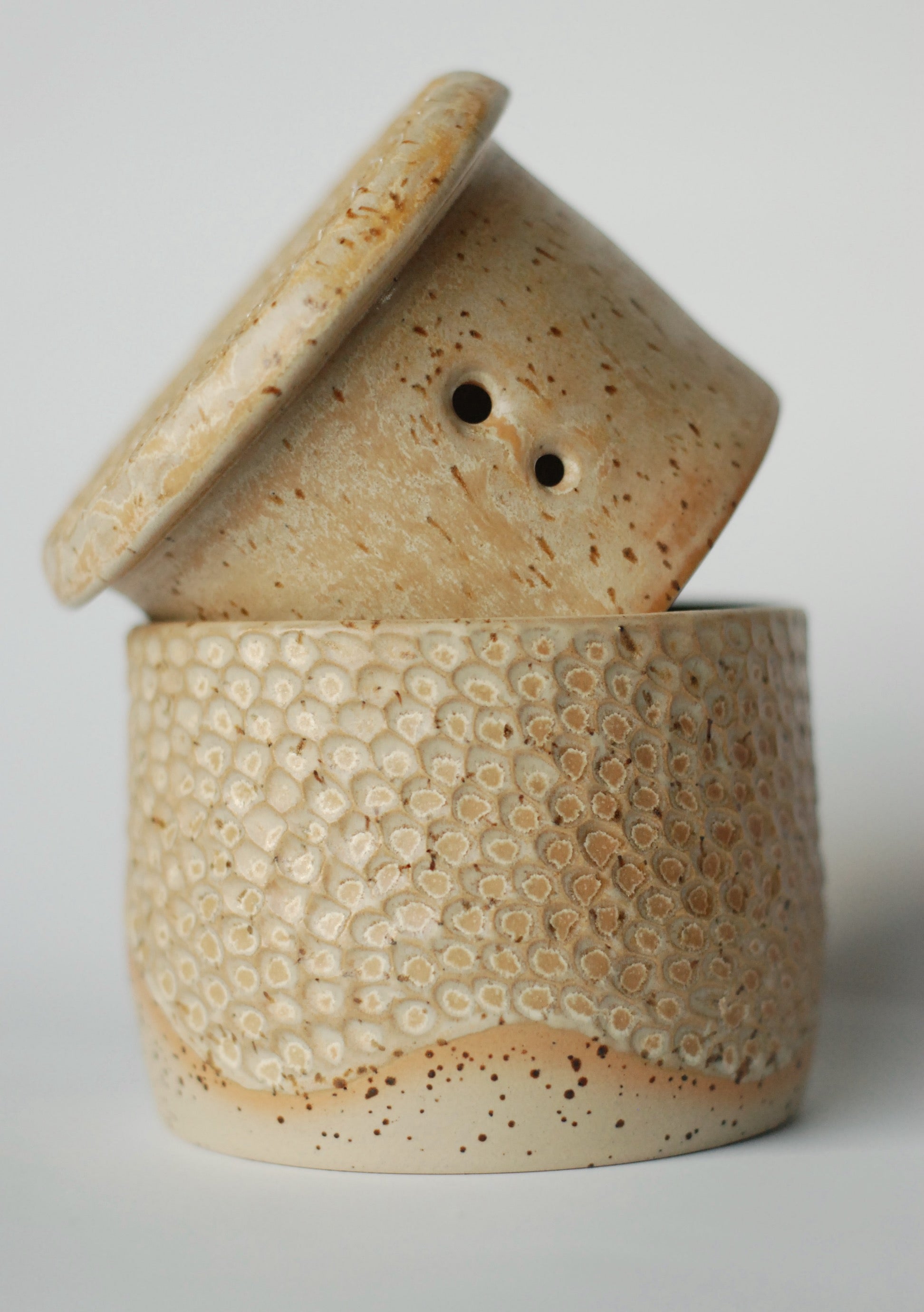 Francuska, wodna maselniczka z jasnej gliny. Składa się z dwóch elementów: podstawy, którą napełniamy odrobiną wody, oraz pokrywki z "dzwonem" , którą napełniamy masłem. Mieści kostkę masła.