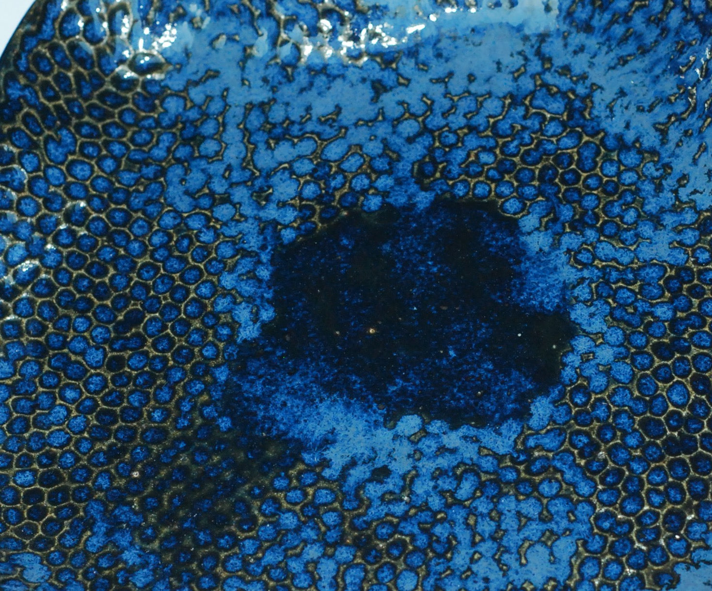 Patera o nieregularnym kształcie w kolorach głębokiego granatu z delikatnymi jaśniejszymi przebarwieniami. Wyraźnie widoczna struktura.